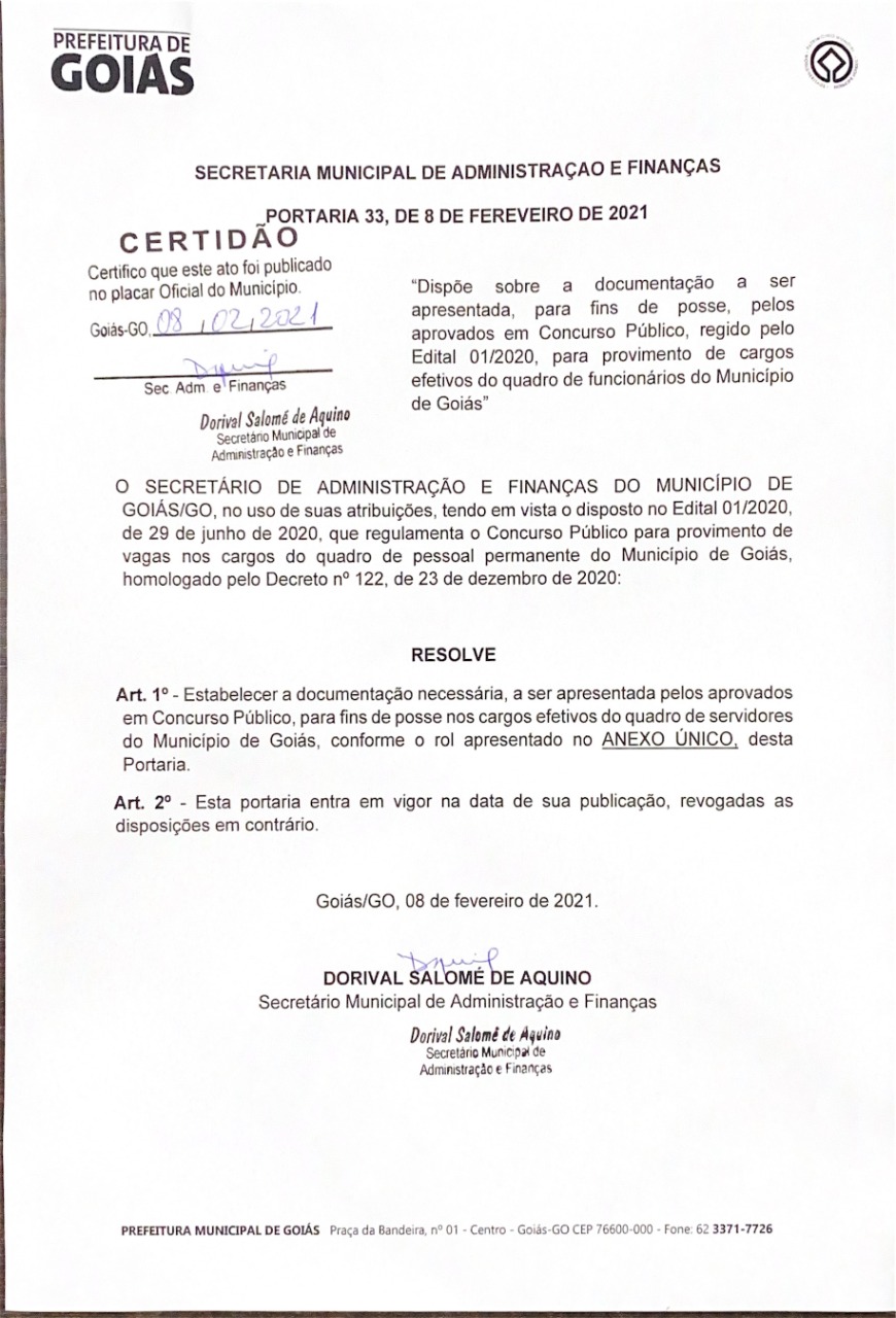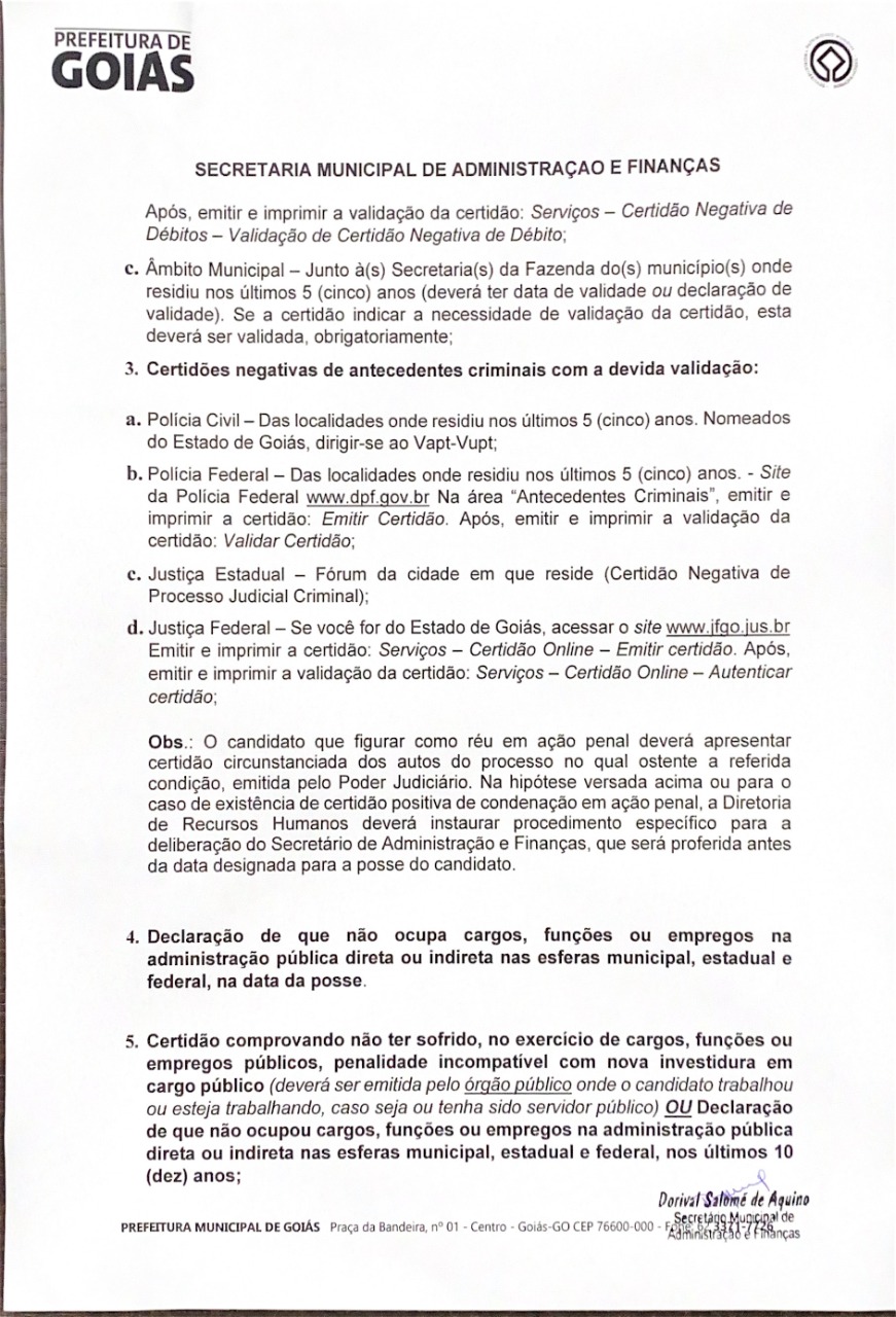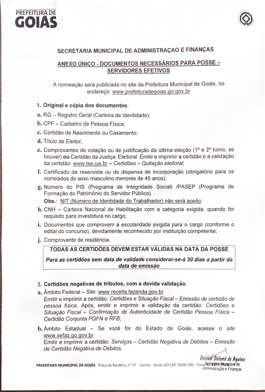 Prefeitura Municipal de Goiás começa a chamar os aprovados no concurso